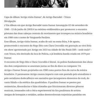 "Arrigo Visita Itamar", celebra sobretudo, a amizade entre Arrigo Barnabé e Itamar Assumpção' - Hits Perdidos - (web) / - 20/08/2024 - Ver link original